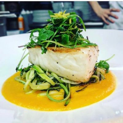 French beans, heirloom tomato, mashed potato croquettes, thyme & garlic beurre blanc 44